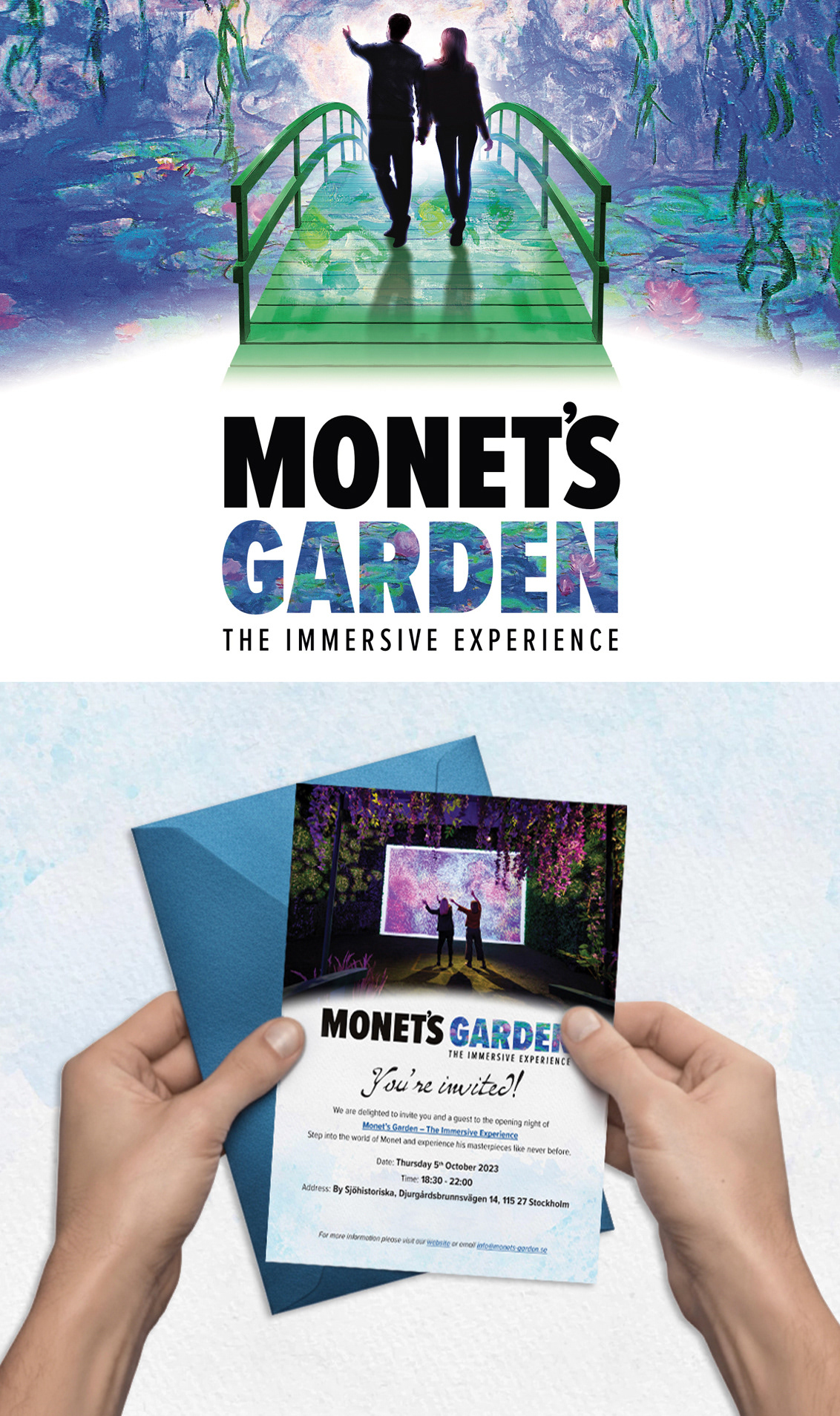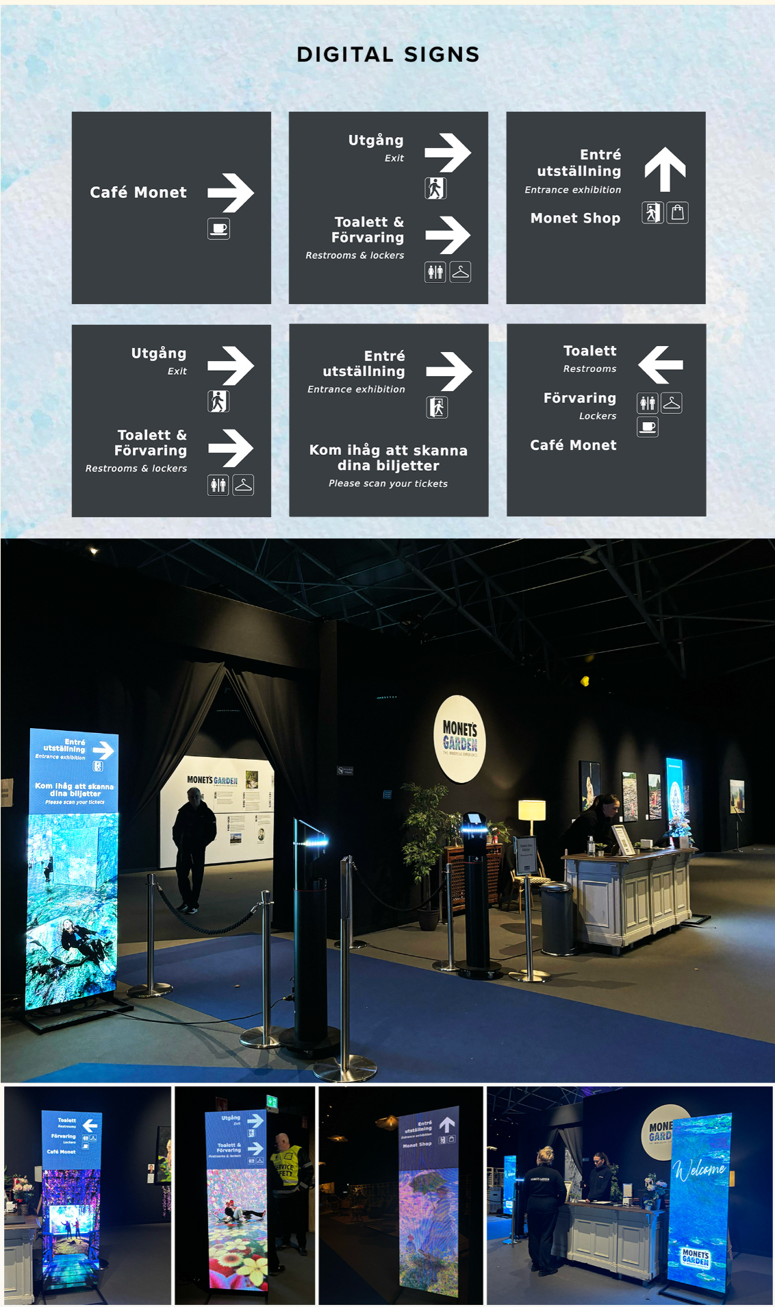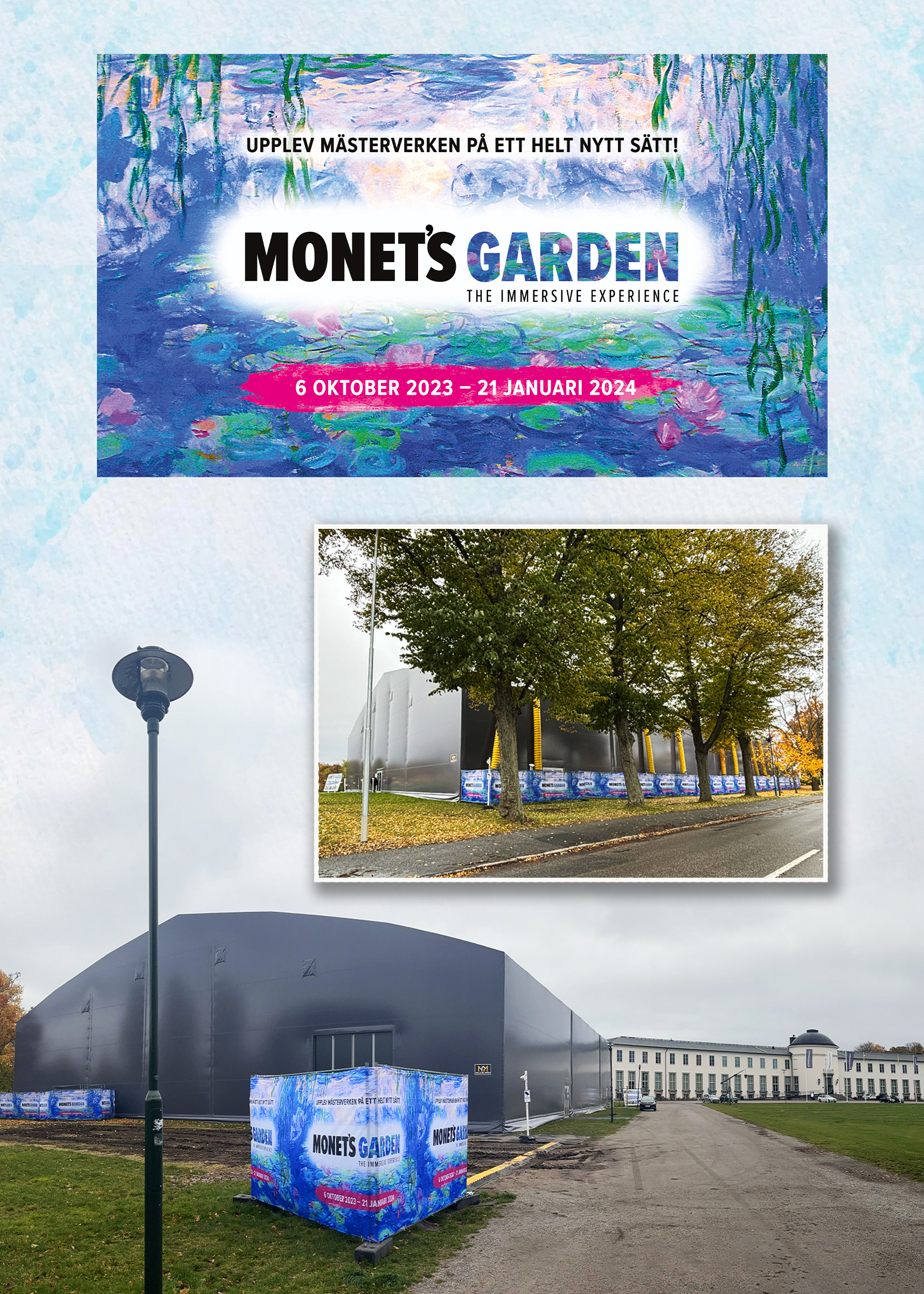As Lead Graphic Designer for the Stockholm exhibition, the project goal was to bring Monet’s world to life by closely following the exhibition’s visual guidelines and translating them into a consistent, immersive visual system. This included the design of flyers and social media assets, as well as all exhibition signage, interior and exterior panels, fence wraps, and merchandise—ensuring a cohesive and memorable visitor experience across every touchpoint.